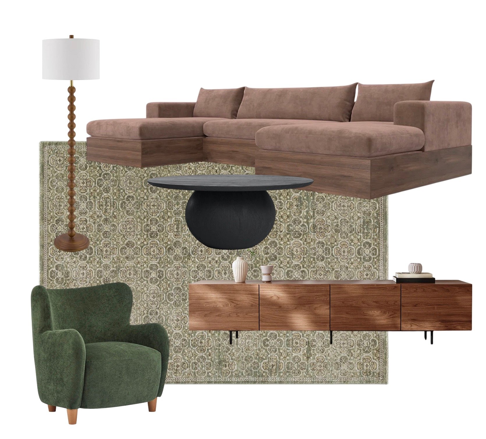 See what I mean? All of the lines of the pieces are clean and modern, but the shapes of the lamp, chair, and pattern of the rug are traditional. The greens, browns, and different woods give it that organic feel, and nothing is matchy-matchy. Even the green tones are varied! I also want to point out the important style choice to mix visually bottom-heavy pieces with less visually top-heavy pieces. The sectional and coffee table (and the lamp in a way) are flat to the ground, and the bulk of the visual weight is at the bottom. Then the accent chair and media console have legs and space under them, with their visual weight on the top. It’s a nice balance that your eyes will appreciate in the space. Add some family heirlooms if you have any you like, and some more decor (which Wayfair has so much of), and you are set.