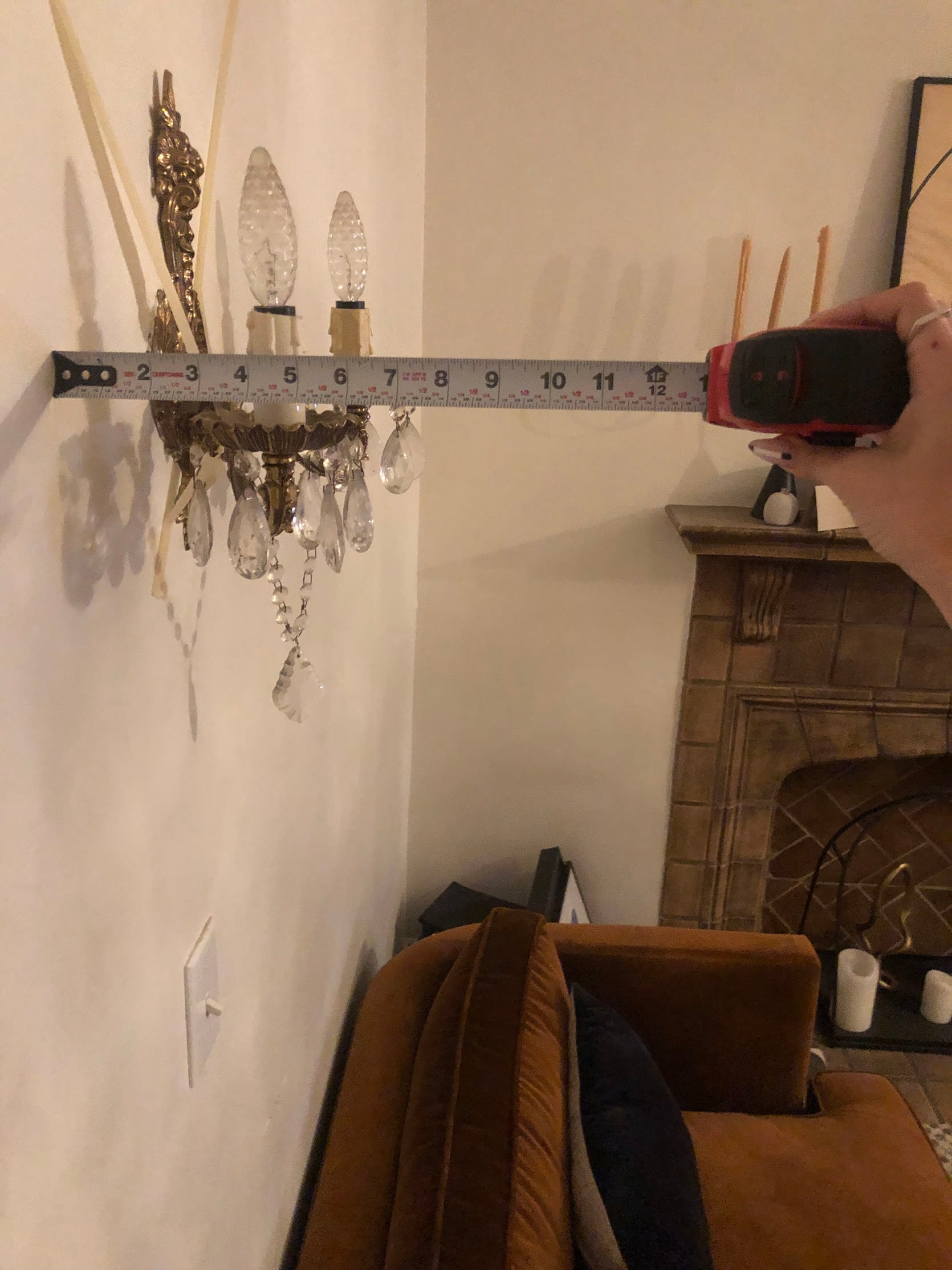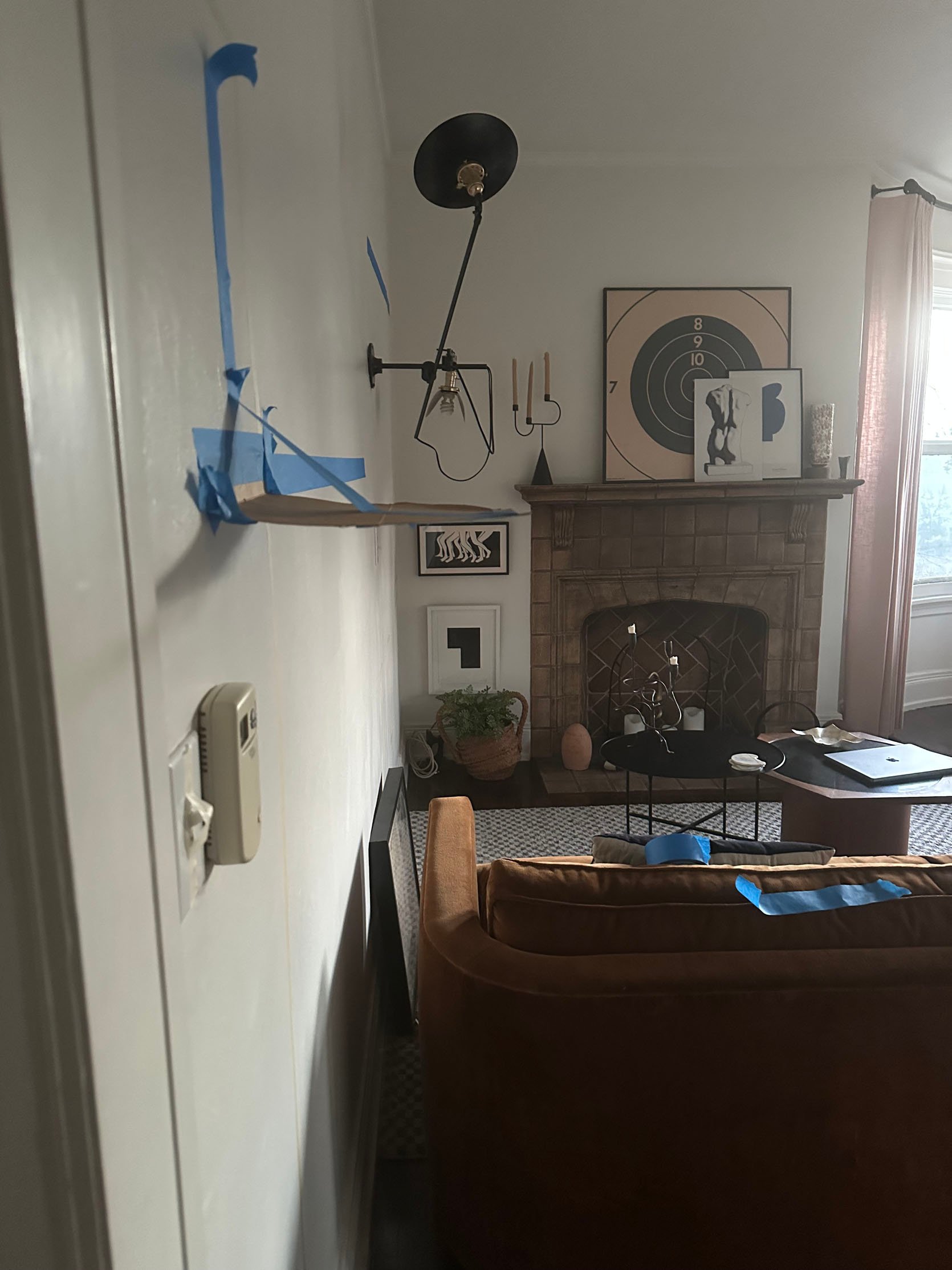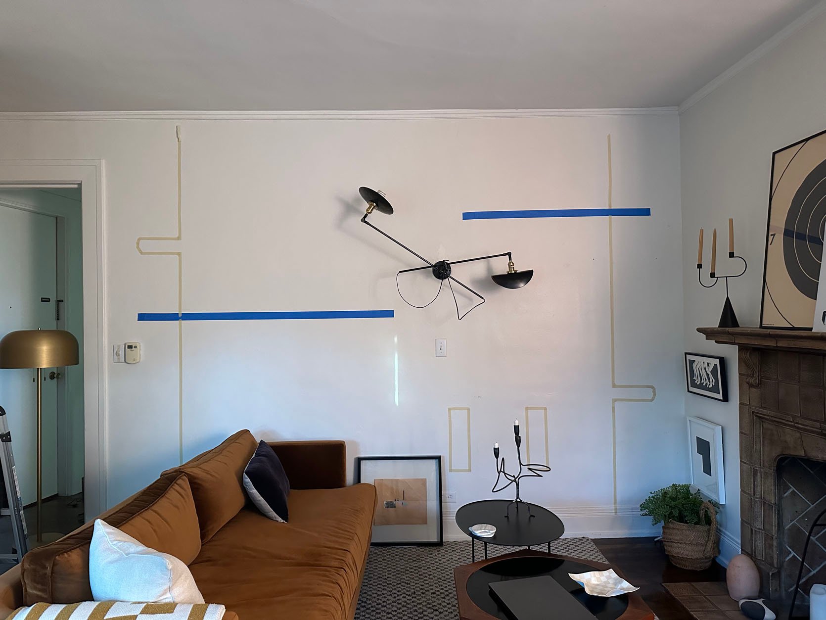 Here was my very professional tape job to make sure I knew where I wanted everything to land. And yes, I was extremely stressed about making a mistake and ruining everything. Oh, and don’t worry, I’ll be talking about that sconce later:)