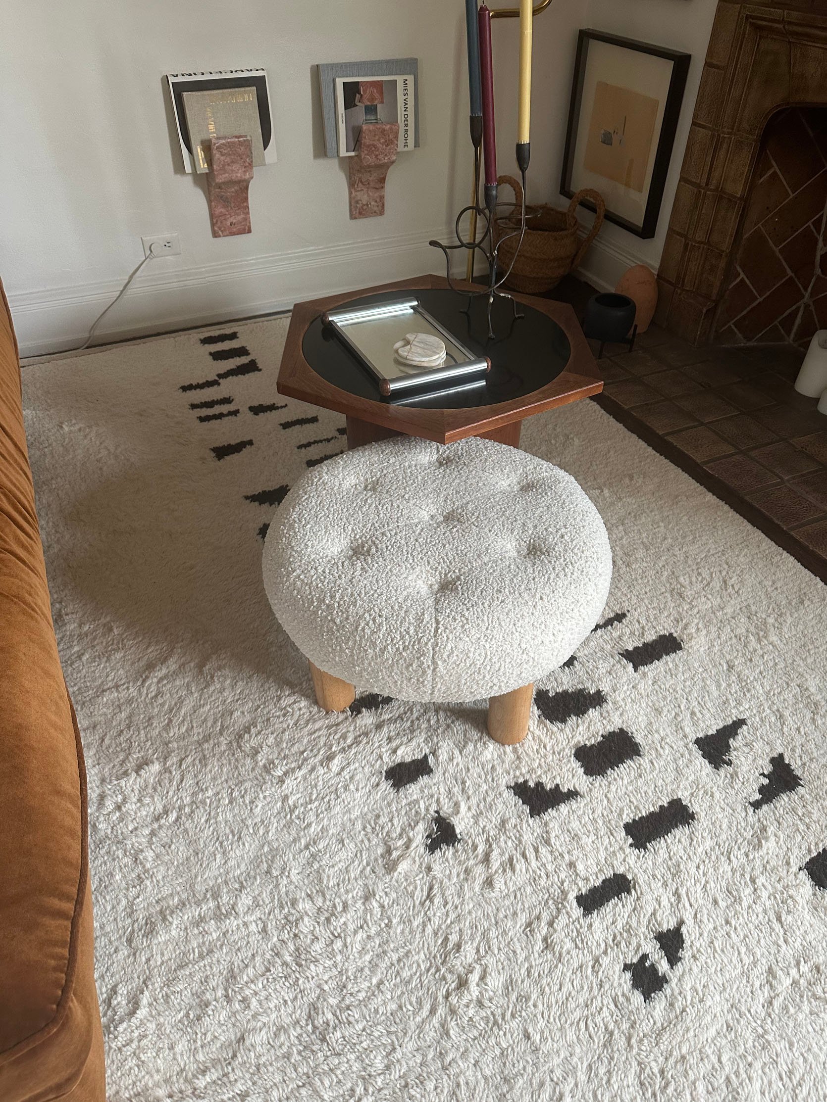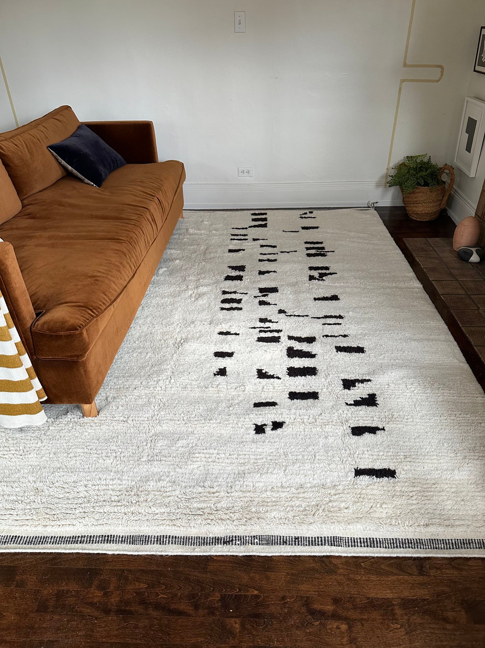 Another “saga” was the rug. I LOVE my grey checkered Annie Selke one and still have it (obviously!), but in this 100+ year old home, it didn’t evoke the feeling I wanted it to. It was a little too “refined.” I wanted a style contrast with a more organic, cozy, textured vibe, which is how I ended up ordering this rug above based on seeing a similar one in a room I loved on Instagram. It’s a Greek Long Hair Flokati rug that was a great price (under $400 at the time for a 6×9) and was really pretty, but also not right. I tried it in my bedroom too, but no dice. It now lives with the checkered rug in my storage unit (because I carelessly didn’t return it in time), waiting for its day in the sun.
