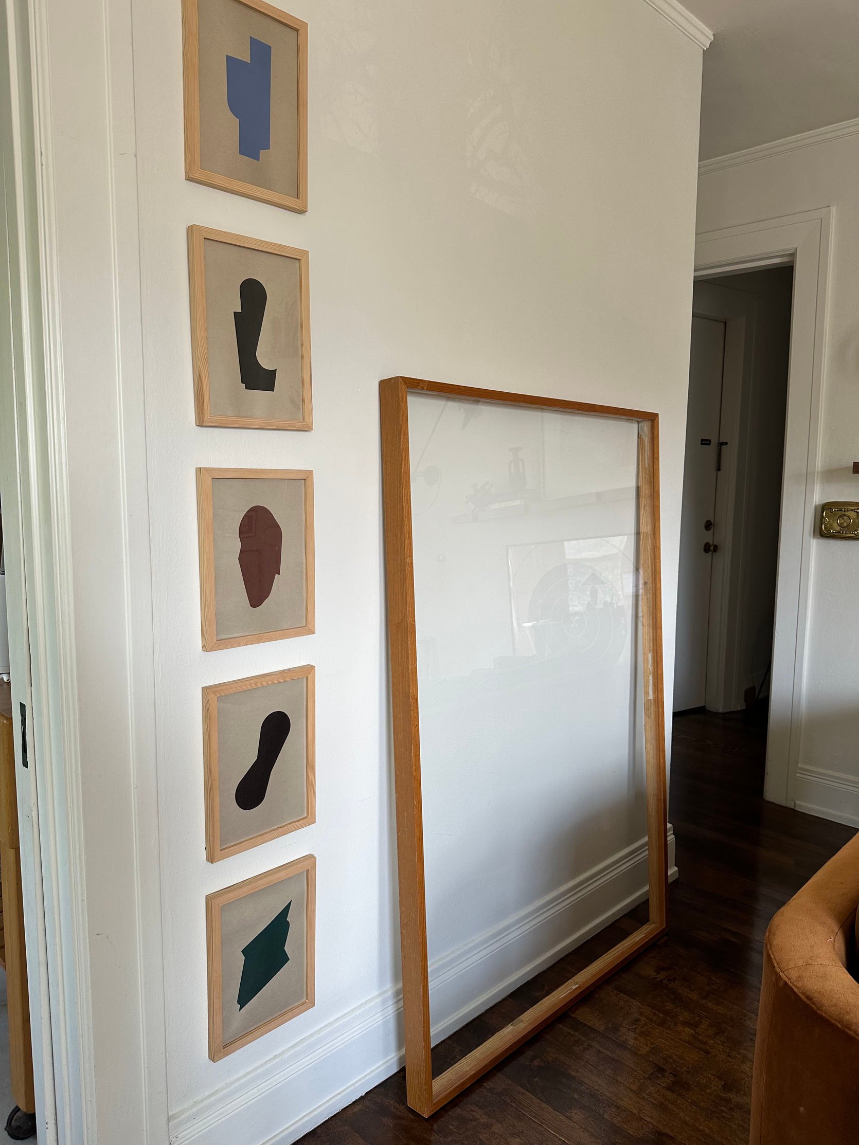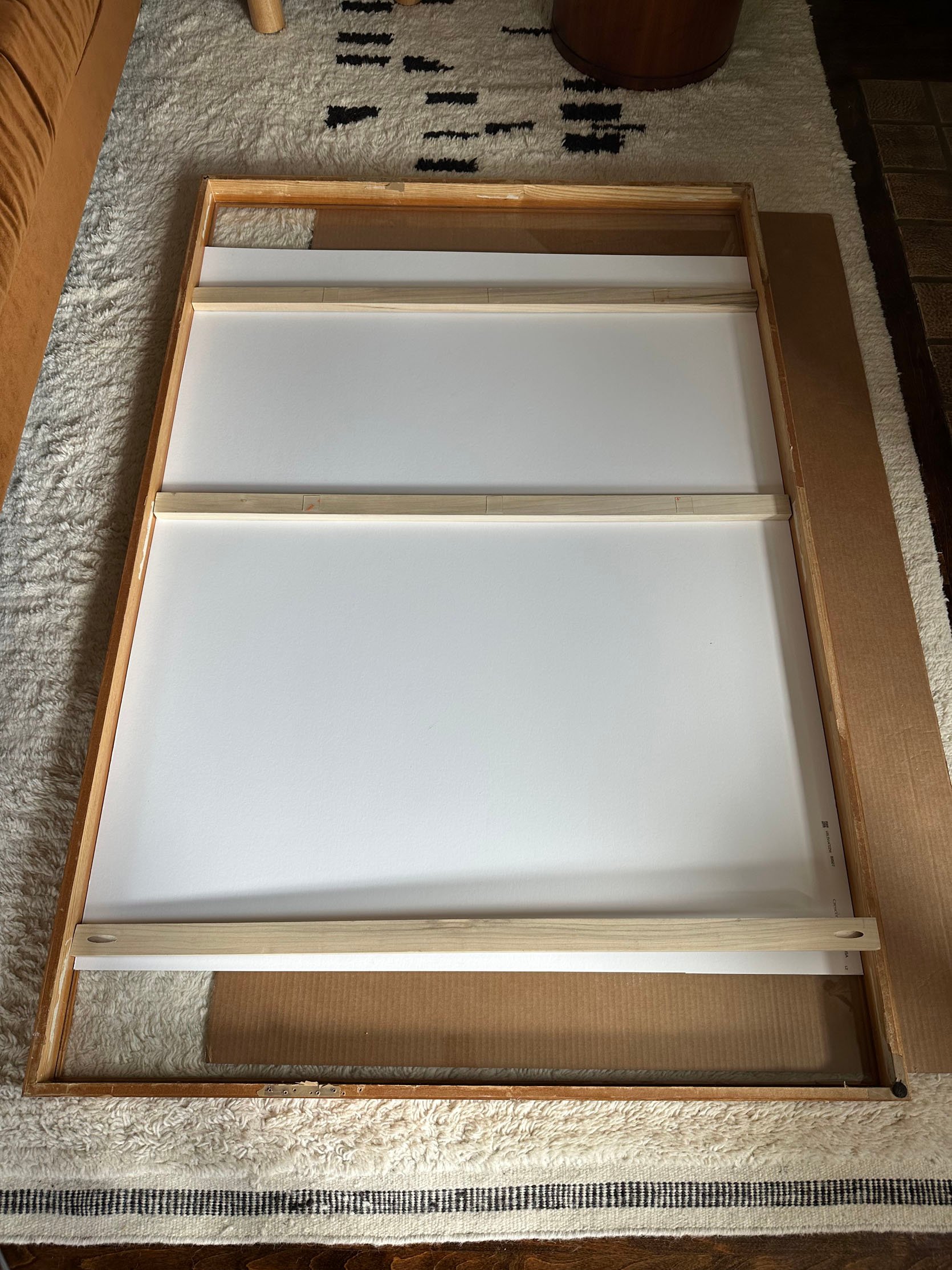 I then went to a local glass place after calling a few other places for quotes and was able to get the glass and installation for $90. The trickier piece to find in the size I wanted was the mat. The largest piece I could find that didn’t need to be custom was 40″x50″, which I got from a local framer for maybe $50? Thank you, Quick Frames! While I didn’t exactly have a choice without spending an unnecessary amount of money on a custom size, I really love that the mat almost looks like it’s floating with the open space on the top and bottom.