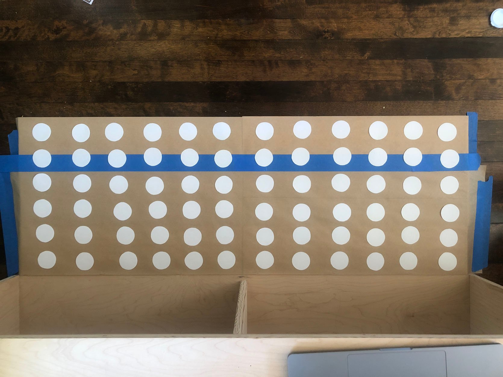 Welcome to the beginning of my losing my mind. I wouldn’t say math is my strength, so somewhat detailed measurements easily make my head spin right off. These were the cabinet doors and the beginning of “evenly” placing all of my future circle holes.