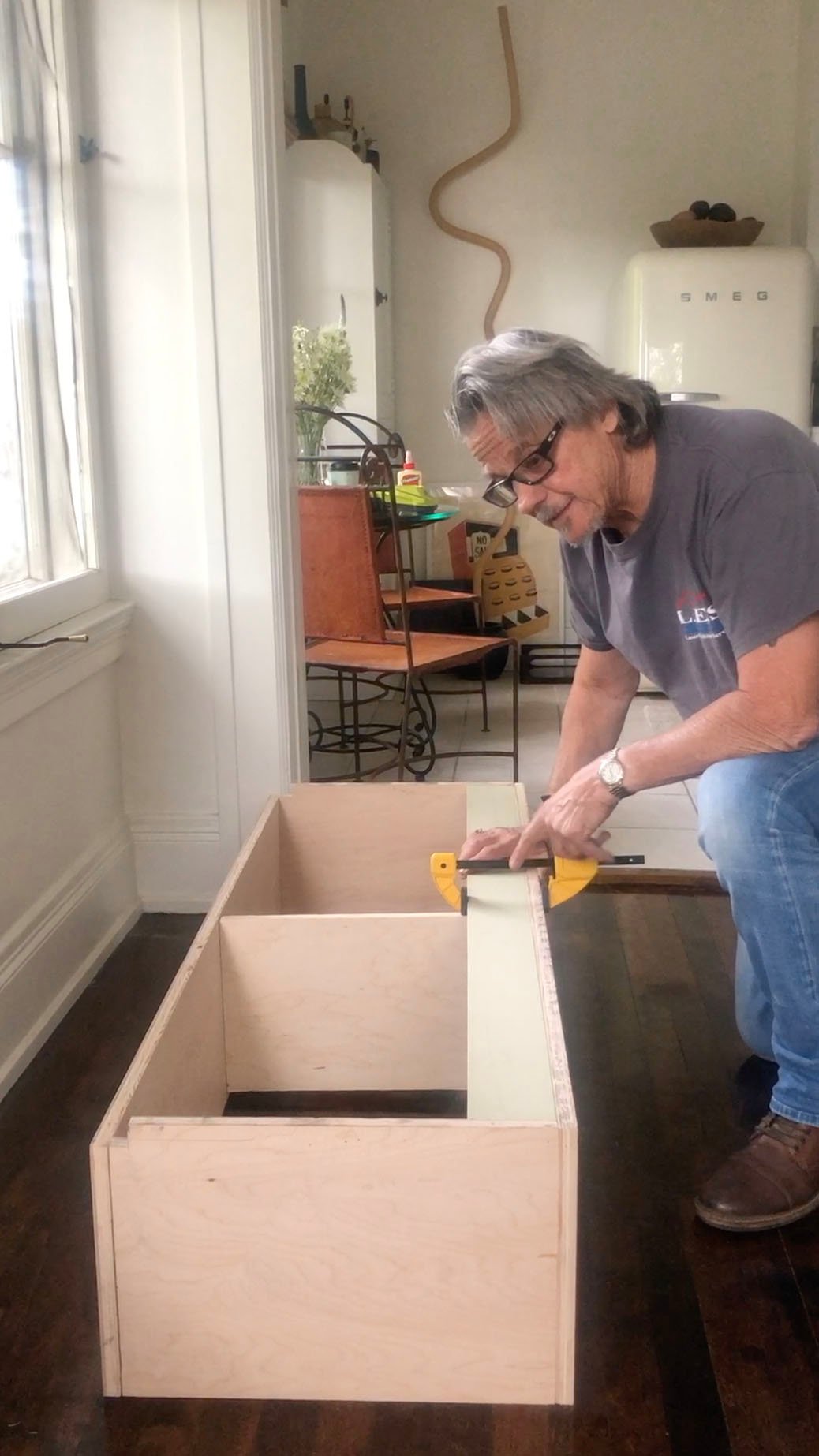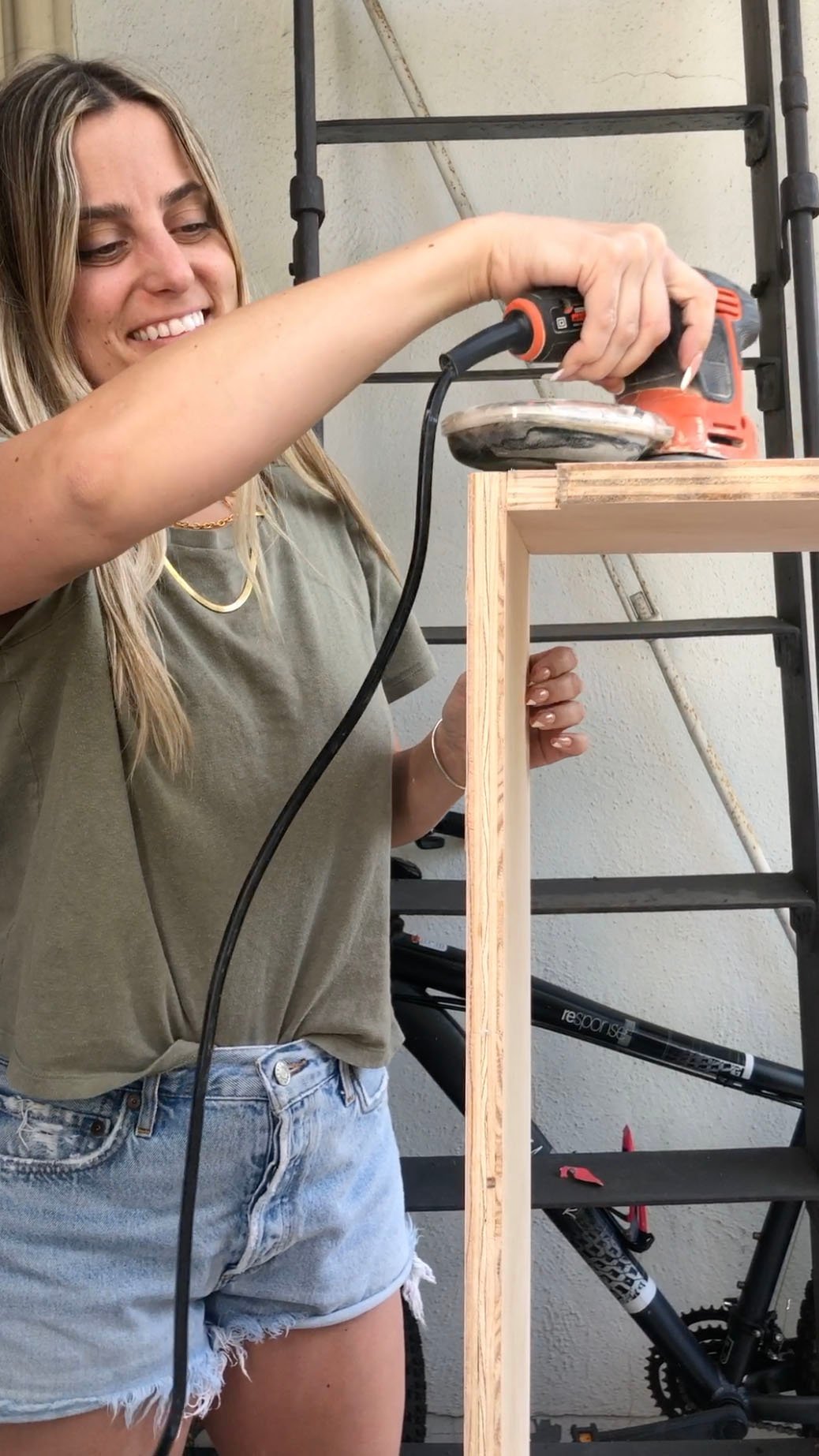 The actual last DIY my dad helped me with was my media cabinet/bench. He built the frame, then I sanded, stained, and almost lost my mind.