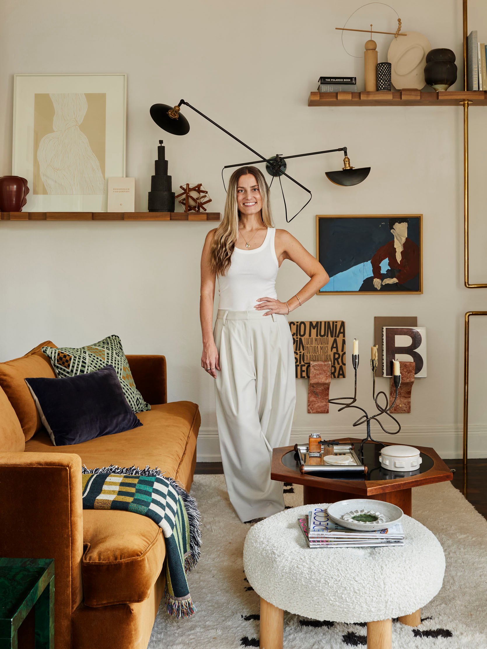 Ok, before we move on, I have to talk about that painting. I saw a version of it on Facebook Marketplace, and after a couple of weeks, while Bowser was over, I asked her for her thoughts, and she told me to get it. Done. I messaged the seller, and to my disappointment, the piece had already been sold. But then she told me she could make me another one, and in under a week! I was thrilled since I didn’t realize that she was the actual artist. Cut to my being in a rough headspace due to yet another horrible piece of government news, but heading over to pick it up. The artist was Utharaa Zacharias, who is half of the design studio Soft Geometry! In case you don’t know them, she and her partner, Palaash Chaudhary, design beautiful furniture, lighting, and objects. Initially, and not realizing who she/they were at first, I asked if she had any desire to be linked on a design site since the piece would be published in my room reveal. She asked which site, and when I said Emily Henderson, her response was “Wait, are you serious?” to which I smiled and said, “Yes.” It was then she told me that they were Soft Geometry. Then it was my turn to say, “Wait, are YOU serious?” I felt so silly not putting the pieces together before meeting in person. I am a big fan and now can’t believe that this wonderful painting that I loved and was excited to put on my wall, regardless of who painted it, has this really special story attached to it. So while Utharaa paints more for fun than anything else, the texture, colors, and details are more than I could have asked for. Not that anything I was upset about was fixed that day, but I was quickly reminded that connecting with people will always help to fill you up.