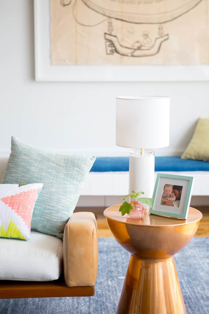 Meanwhile in the guest room (that is soon to be another baby room - design plan coming in 2 weeks) we played around with a task lamp and a cute little pillow. If having gold instead of silver detailing on that lamp makes you happy then stay tuned for fall :)