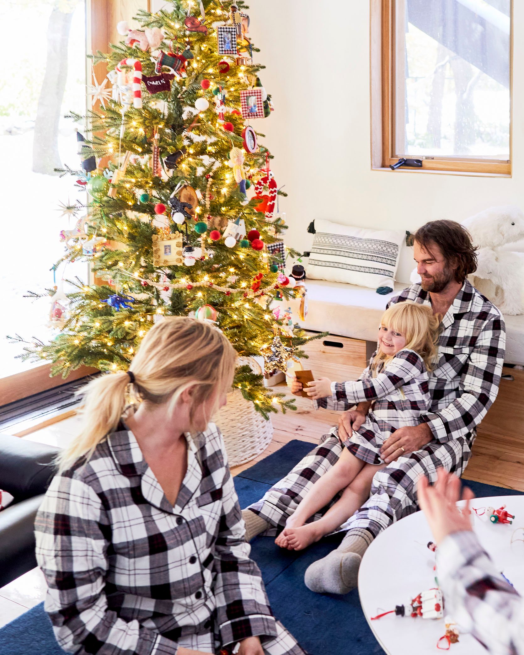 We host a big party with all our school friends (and parents who are our friends), which is a total blast. Everyone wears festive attire, and the kids draw names and secretly buy each other ornaments. This keeps the budget really simple and narrows the focus for everyone involved. We make it a big old thing where they each open one at a time, and everyone “oohs and ahs” (they are usually based on the kids’ interests at the time). Again, sign and date! This year, I want to add a hot chocolate bar for the kids. We usually do a big, organized photo ornament craft (but the 6th-grade boys are resisting this year).