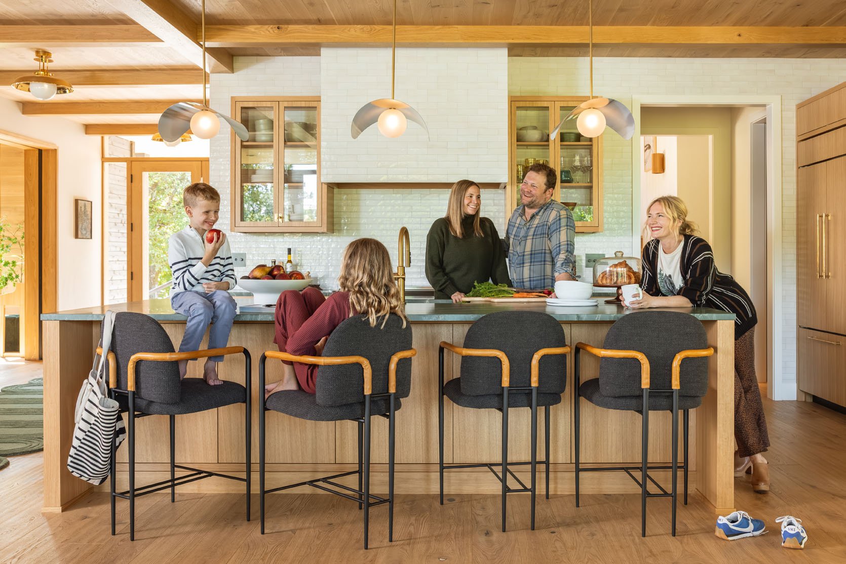 Welcome to my brother’s new River House modern kitchen reveal. She is open, minimal, textural, and hyper-functional for their family of four. We LOVE how it turned out, and when you walk through the house, it flows so well with the design as a whole. The colors, textures, and minimalism keep everything calm while the styling and furniture pop. Let’s give you a tour (and see the family in action).
