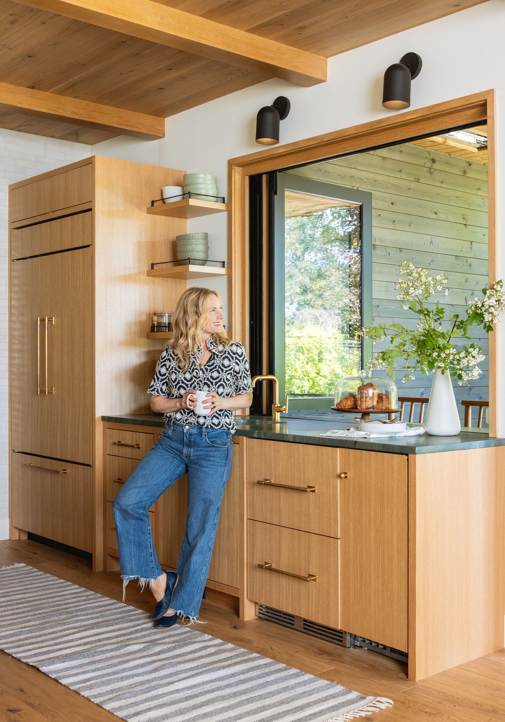 They have a separate cabinet run for the bar (that opens to the kitchen patio) and houses their coffee situation. It also has drawer fridges and a pebble ice machine (like brother, like sister). The window is from LaCantina Doors, and I had nothing to do with it, but it’s pretty dang awesome.