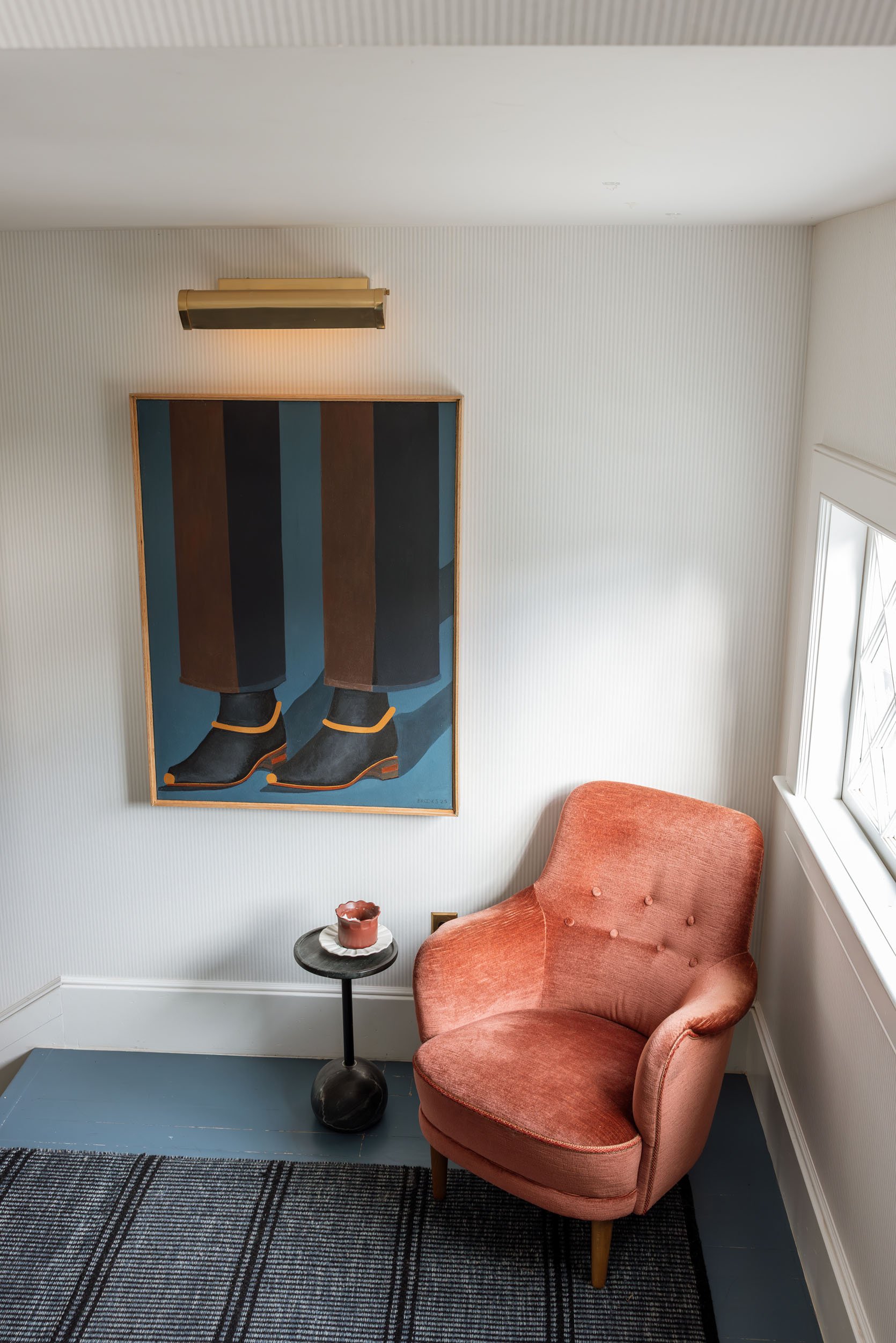 I have been a huge fan of Brooks Burns art for a few years (ever since I discovered it on IG – one of the BEST, most positive things about social media IMHO). I “liked” every painting he ever posted and have tried to figure out a way to put them into any and every project, but we are always on tight deadlines, and investing in something sight unseen from across the country can feel risky. But when I saw this painting, in those colors, I immediately did what I had done before and Dm’d. I think my exact message was “I want. OMG. So good. Those colors. I don’t know where it will go, but how big and how much?) Apparently he had seen my enthusiasm before, knew about my following, and proposed a deal. It arrived 10 days later, and it is obviously more incredible in person. Having contemporary art in my home is not something I take for granted, and I appreciate the hell out of it. I’ve always said that it’s what I would splurge on over anything else because it’s what makes your home interesting. There are so many great sofas out there that are more affordable. Save your money on furniture (unless it’s statement furniture) and buy art instead.