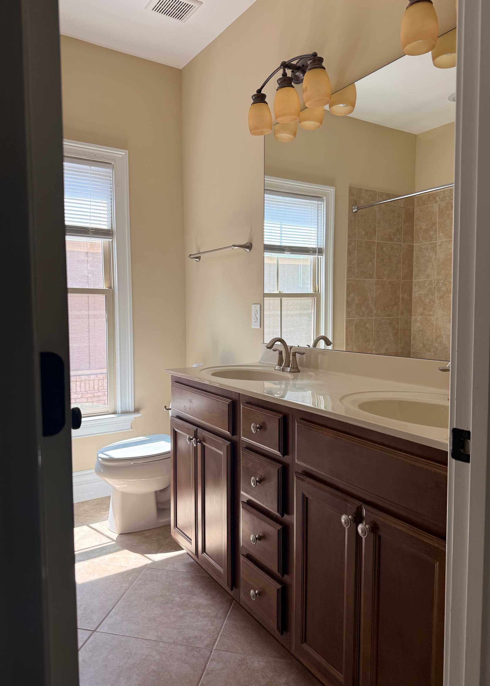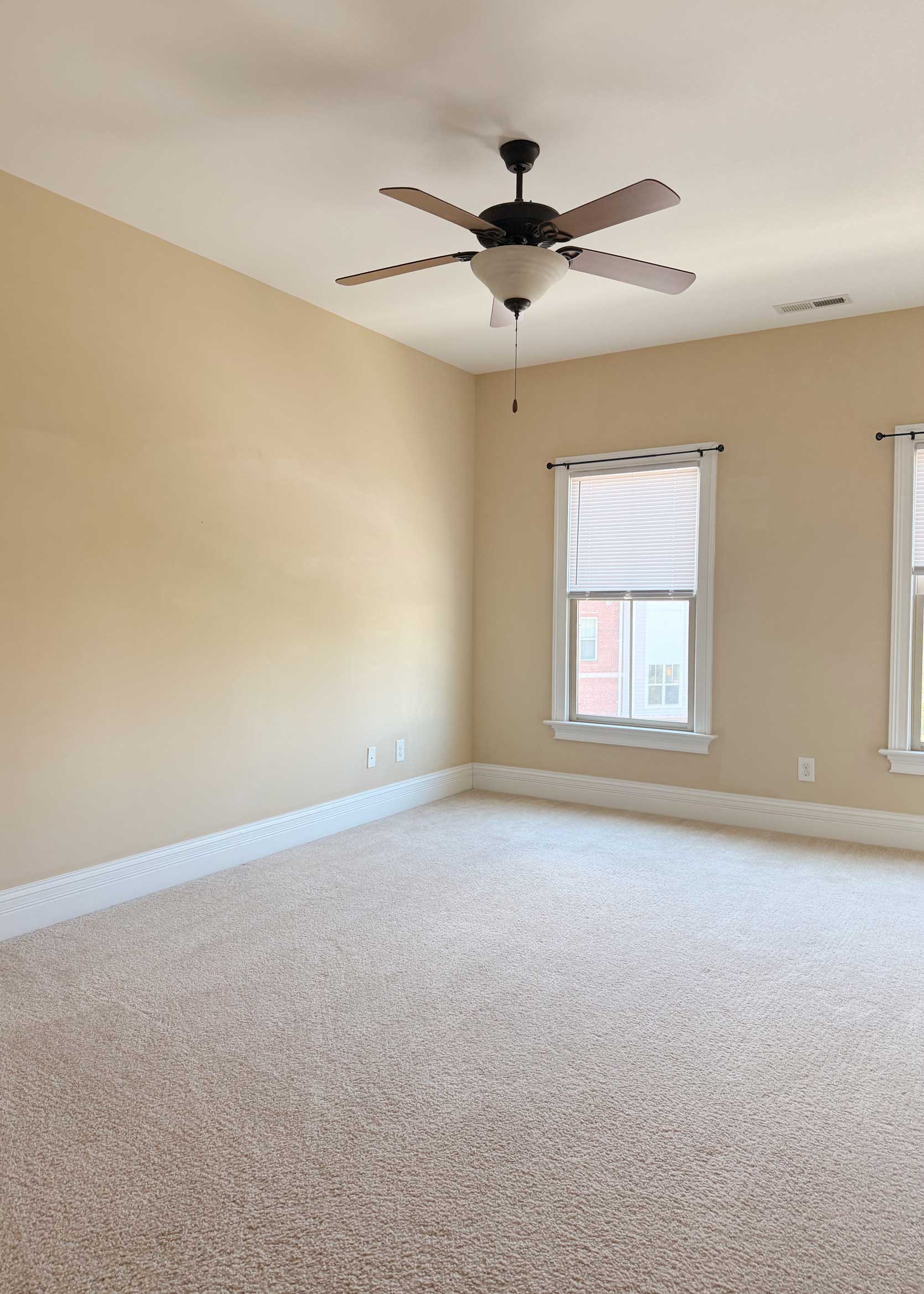 The lighting and finishes aren’t my taste, but I’ve never shied away from swapping out fixtures because that’s an easy fix. Some added draperies, furniture, and soft goods are going to absolutely transform this place. I have no plans to paint (though some peel-and-stick wallpaper might make an appearance somewhere), but instead, I’m challenging myself to work with the warm, creamy walls and make them feel intentional. My next post will walk through some plans, so definitely come back next week for that.