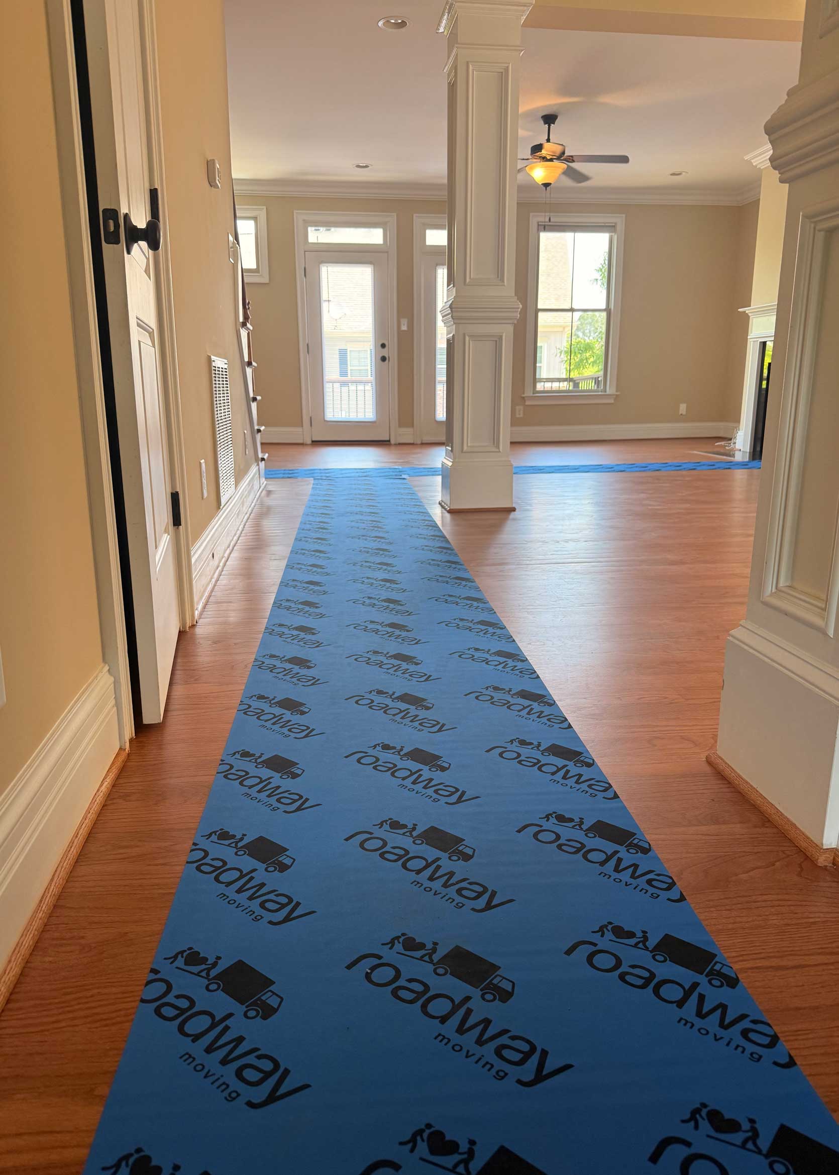 On moving day, the truck rolled up with a team of four. We ran through the house and all our stuff, and they got to work. Floors were covered, corners of walls and door frames were protected, and they expertly wrapped up my furniture with furniture pads, stiff cardboard edge protectors, and then plastic wrap. It was really impressive to see the care they put into protecting our things.