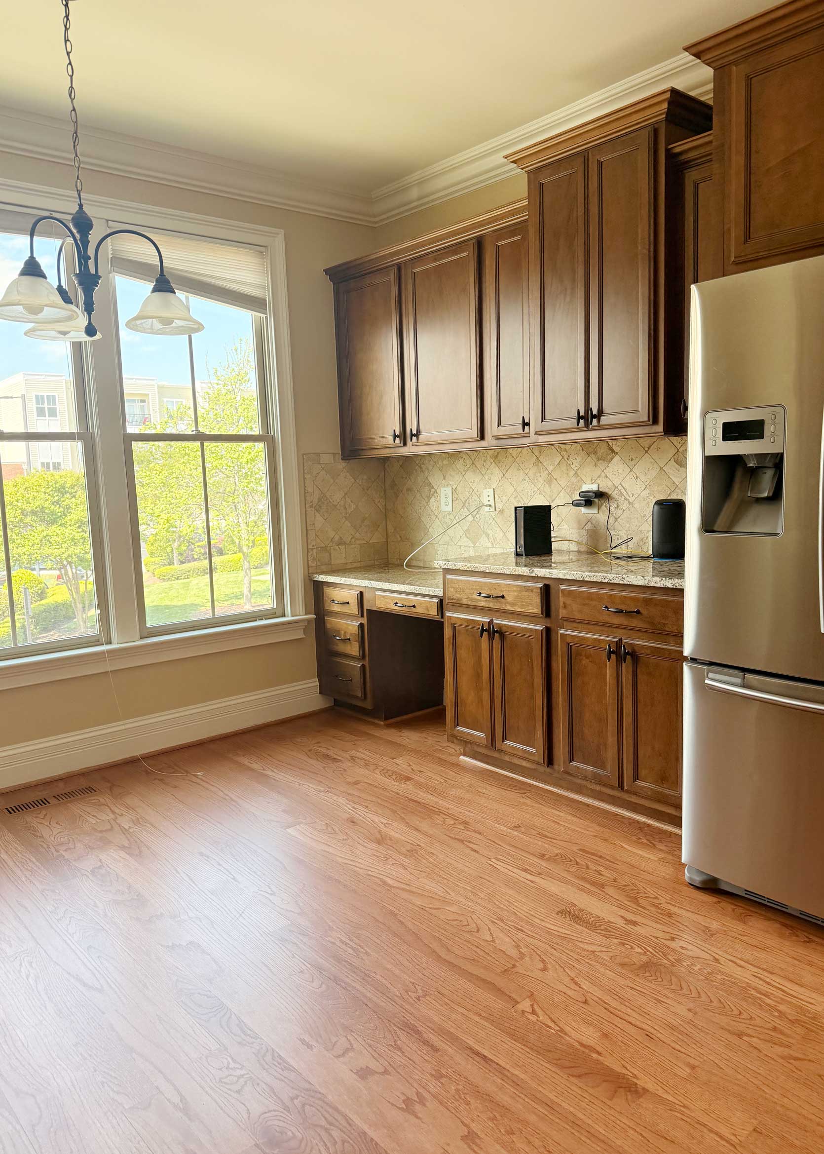 From there, we found another spot that had potential, but when I had Ajai (remember her?!? She lives near Raleigh, too!) go take a look at the surroundings, she gave it a thumbs down because the unit opened up directly onto one of the busiest highways in the area. So we kept hunting, and thought we found *the* spot. It had built-ins around the fireplace in the living room, tons of square footage for all of our needs, a large kitchen with a sizeable island, and was in a great school district. The only red flag is that it had been sitting on the rental market for months and months, and the property manager conveniently kept side-stepping my questions about it. So we asked that extended family I mentioned we just met to go take a look in person, and they noted that the kitchen had a very strong smell of mold. NOPE! We withdrew our application nearly immediately because that’s just not something we wanted to deal with.