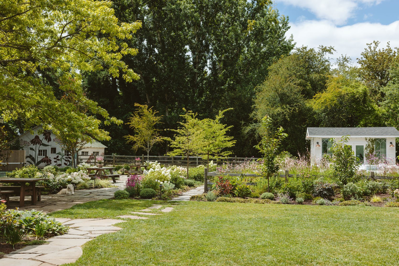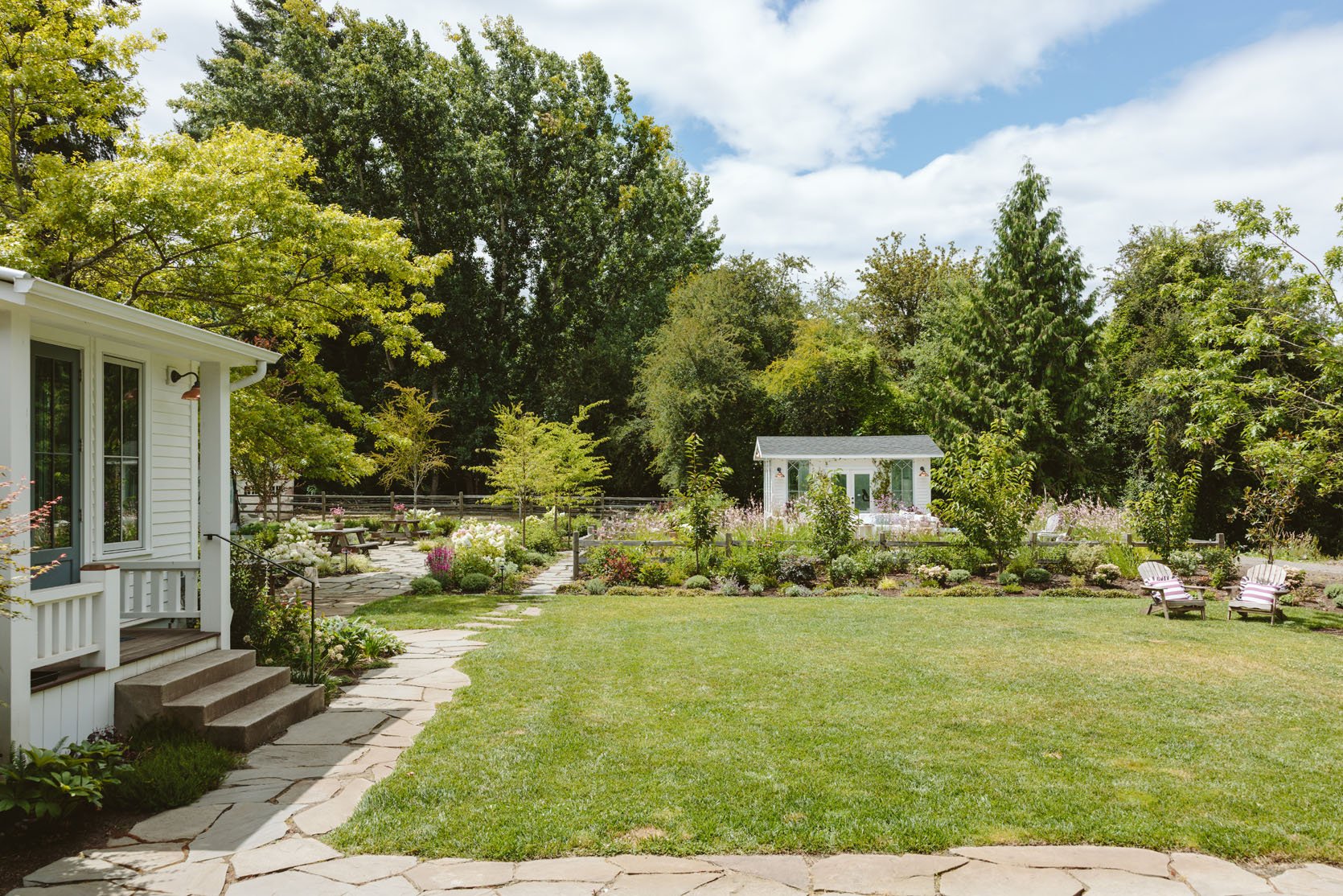 This year, I want to be better about shooting the yard all four seasons – it does change a lot, and Eric, our designer at Dennis’ 7 Dees, did such a great job at selecting plants that thrive year-round. It’s just harder to organize since the weather is unpredictable up here, and only certain times of the day make sense to shoot the yard. I want to make some tweaks near the covered walkway and the kitchen door area (which is our front door basically), so stay tuned on that. But I think they are going to mostly just take what is working back here and plant the same varietals since we know they work and look so good here.