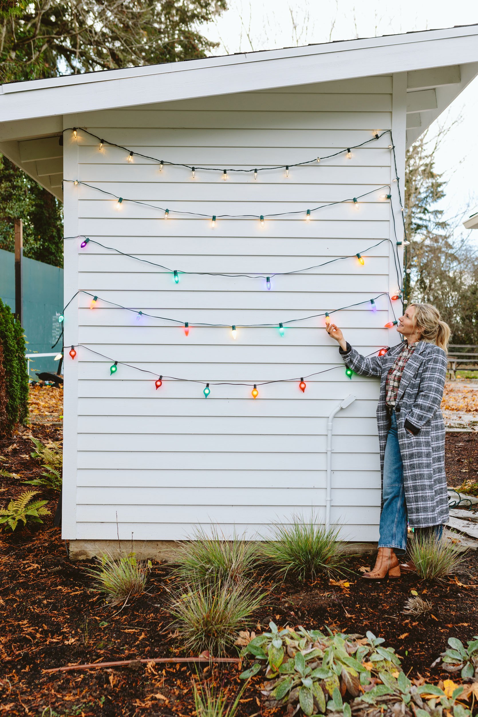 Last year, we put up colored lights for the first time and loved them. The ONLY thing I might have done differently is bought the strand that had the lights 24″ apart instead of 12″. It was pretty bright (but also so fun???!!!). Just make sure to get shatterproof and LED. I love the classic “glass” look (not the faceted), personally.
