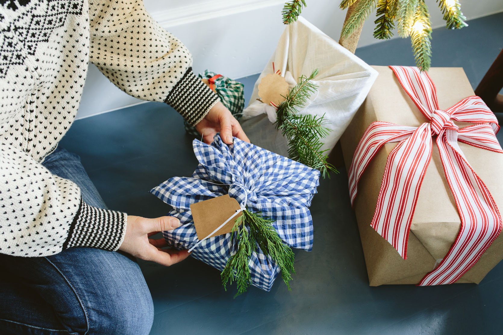 I also love buying fabric yardage to turn into wrapping cloths because I’m on a one-man mission to take down “big wrapping paper” (lol – it’s not a huge deal, I just hate how expensive it is and the clean up on Christmas morning). Wrapping cloths are reusable, so cute, and you just fold them up on Christmas morning for the next year. I bought a ton on Etsy.