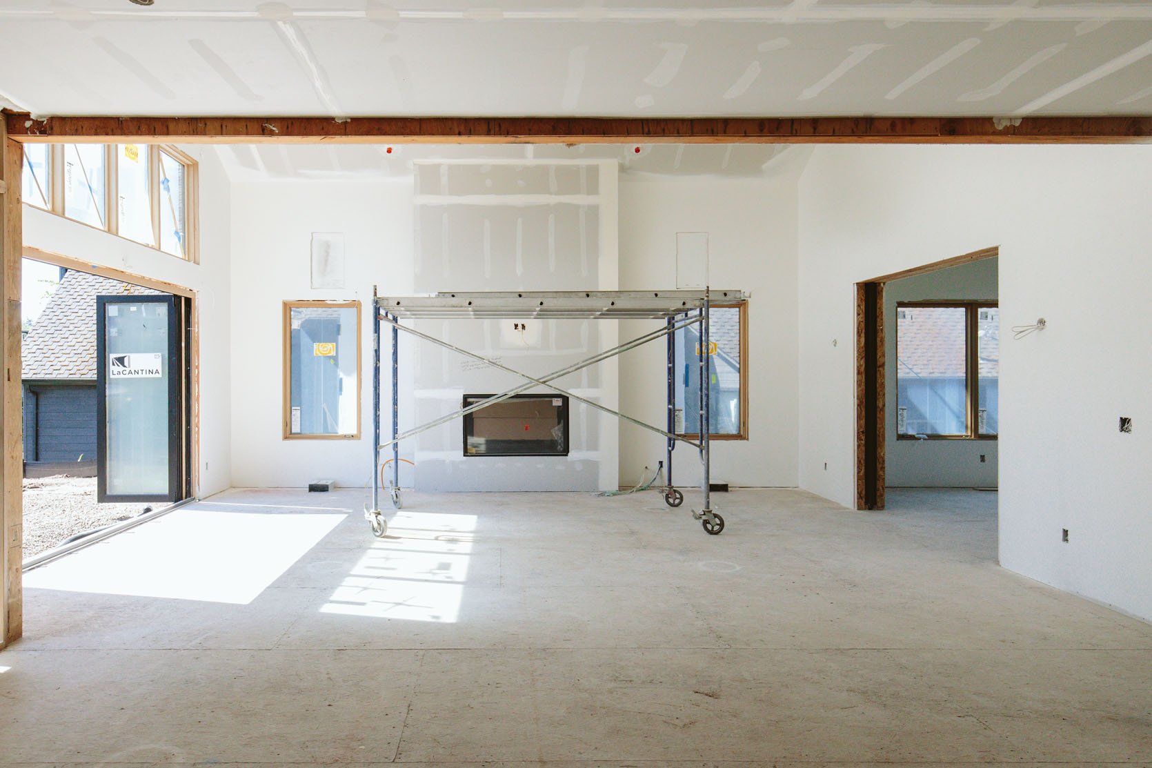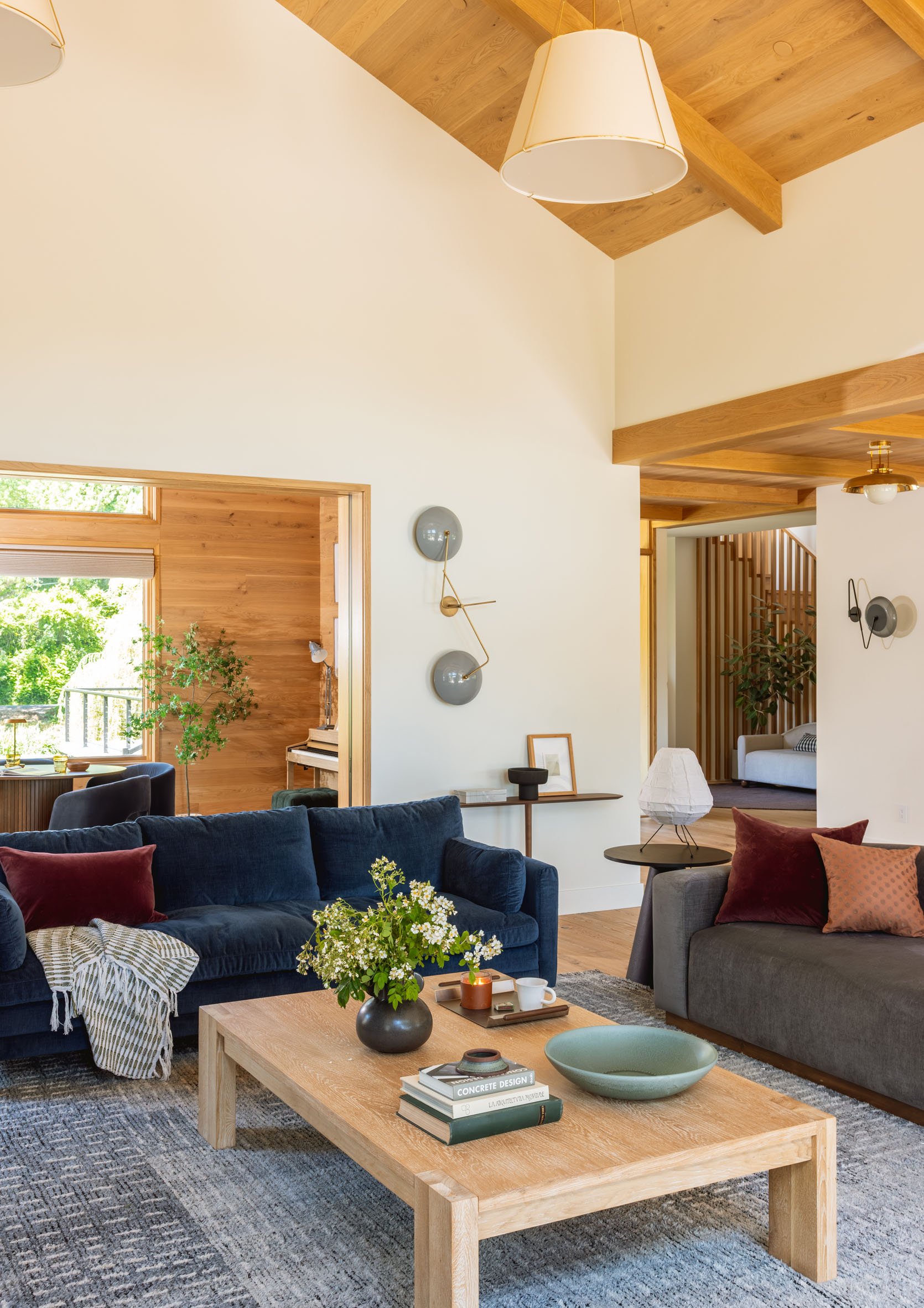 It also opens to the back patio, and there is enough room for flow. She’s big and could have been laid out a million ways (keep scrolling for how I did it). The white oak windows are by Marvin, which they bought after being in our Mountain house (they are so pretty – goodness, I miss that house).
