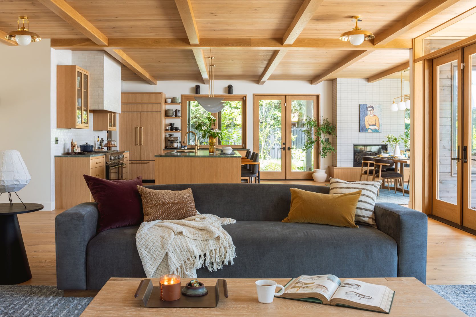 Man, this house sings to me. Your eye isn’t trying to figure anything out; it’s very easy to compute. The kitchen is to the left, and the dining room is back on the right. Such a dream.
