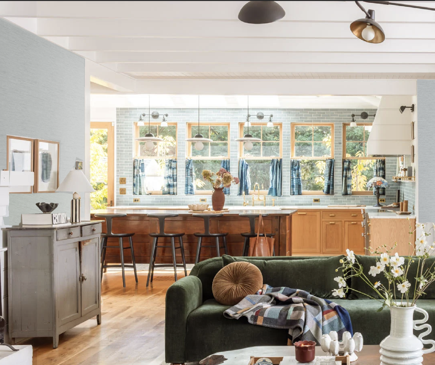 I am in LOVE with these sofas, both visually and functionally. The arms are so pretty, the seat is cushy, the back curve is so elegant, and that darker green pops so well in here. I loved the two facing sofas in here, and our prior sofas from Lulu and Georgia were so comfortable, but the dogs lying on top of the back cushions made them almost unsittable unless I did the daily Herculean effort of taking off the back cushion and pushing, stomping, or jumping on it to make it a rectangle again. It was so annoying. I fixed them daily or avoided sitting on them altogether. So every morning since we’ve had these has been such a treat.