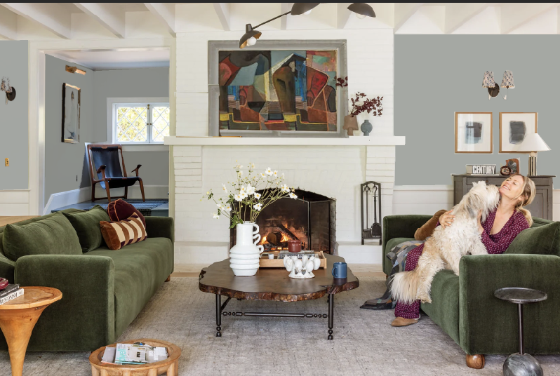 The fireplace could be a light/mid tonal taupe to give it dimension but not overpower. You don’t need to do some major contrast-y shade – anything but white could make it pop more!