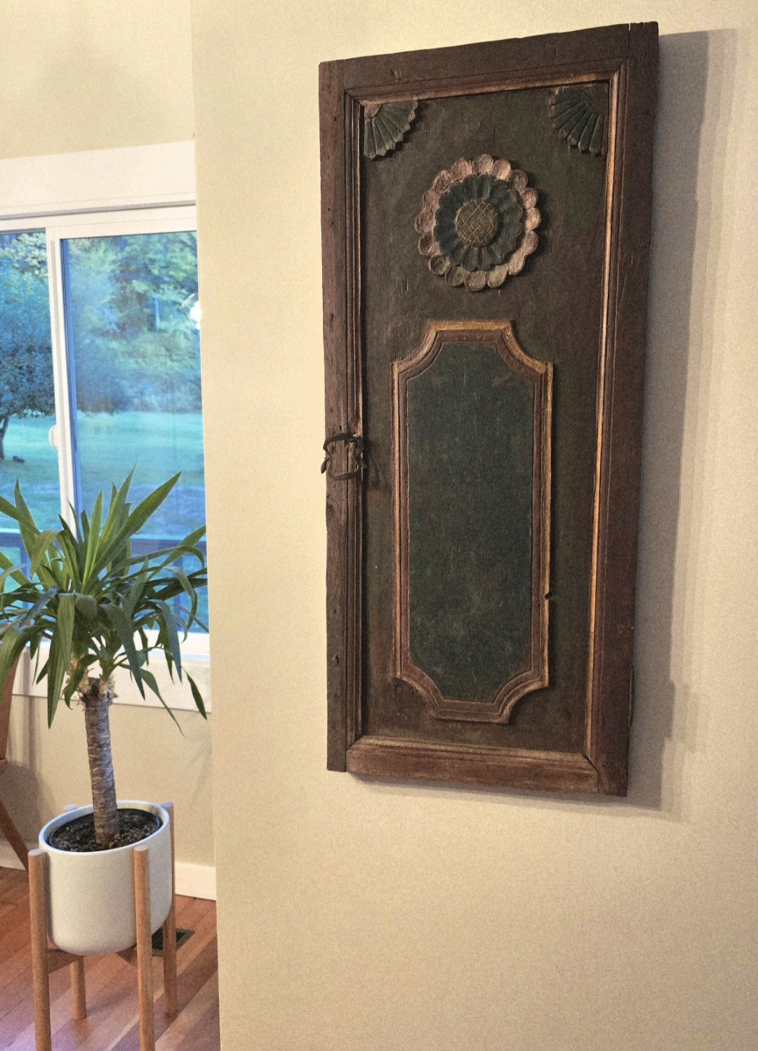 Earlier this year I took a big chance on bringing this cabinet door into my contemporary home. I was so drawn to it and really couldn’t explain why. Honestly, it just does ‘something ‘ and gives a more soulful feel to the room. So happy I went with my gut!