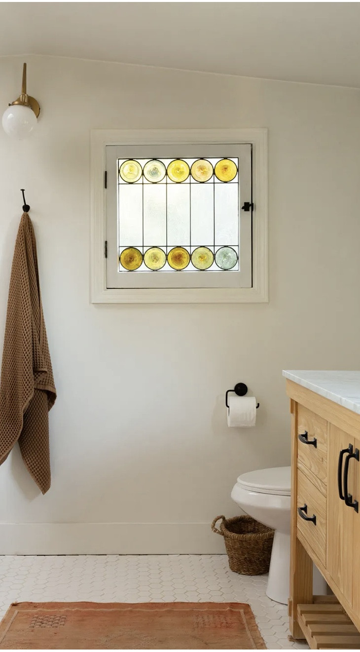 If you’re looking into stained glass, my personal favorite/recommendation of a type to look into (that I personally want in my bath window): hand blown rondels – in any colors! They are kind of a throwback to the Tudor and Spanish houses you used to live in back in CA